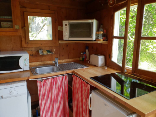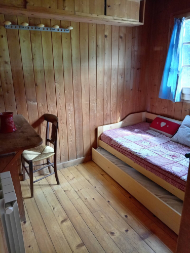 2 petites chambres en bas + 1 chambre à l'étage mansardée (accessible par un escalier extérieur). Cuisine très agréable avec une belle vue. Salle de douche (refaite en 2022) avec WC. Possibilité de louer au mois.