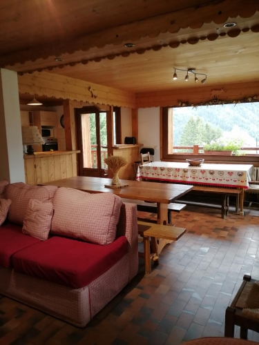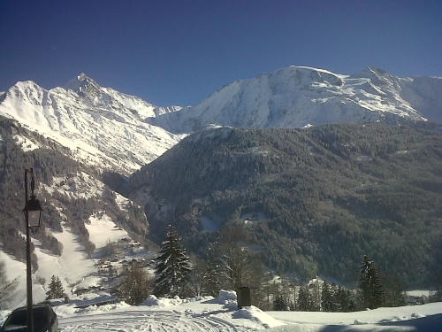 Dans le village de St Nicolas, chalet familial, chambres spacieuses, idéale pour les familles très au calme, avec panorama superbe sur la chaîne du Mont Blanc et les Dômes de Miage.