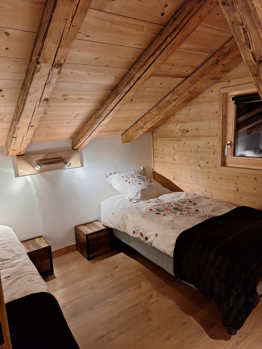 A l’ étage 2 chambres avec 1 lit en 140 et 2 lits en 90 .