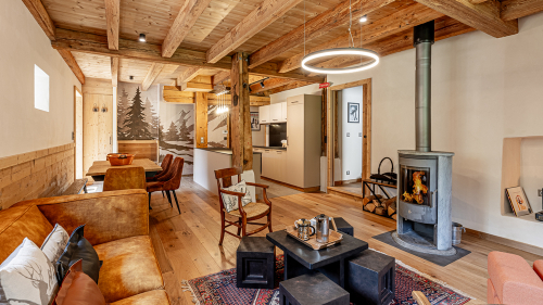 Le chalet Célestin est une ancienne ferme entièrement rénovée en 2023 et aménagée avec gout par une décoratrice lyonnaise.